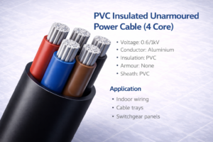 GE Cables 0.6/1kV Aluminium XLPE Armoured Power Cable is designed for reliable underground and industrial power distribution. Manufactured according to IEC standards, this cable provides excellent mechanical protection and thermal performance for medium-duty applications.