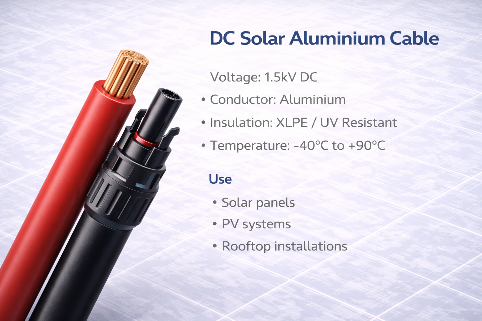 Aluminium conductor solar cable for photovoltaic systems.